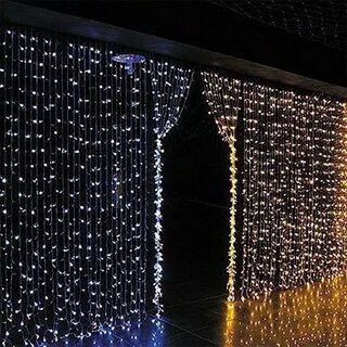 Световые занавесы формируют полотно из множества мелких точек, равномерно распределённых по поверхности. Визуально это похоже на «световой дождь» или сияющий фон, который задаёт настроение с первых секунд. Их используют для декора фасадов зданий, витрин магазинов, сценических площадок или банкетных залов.